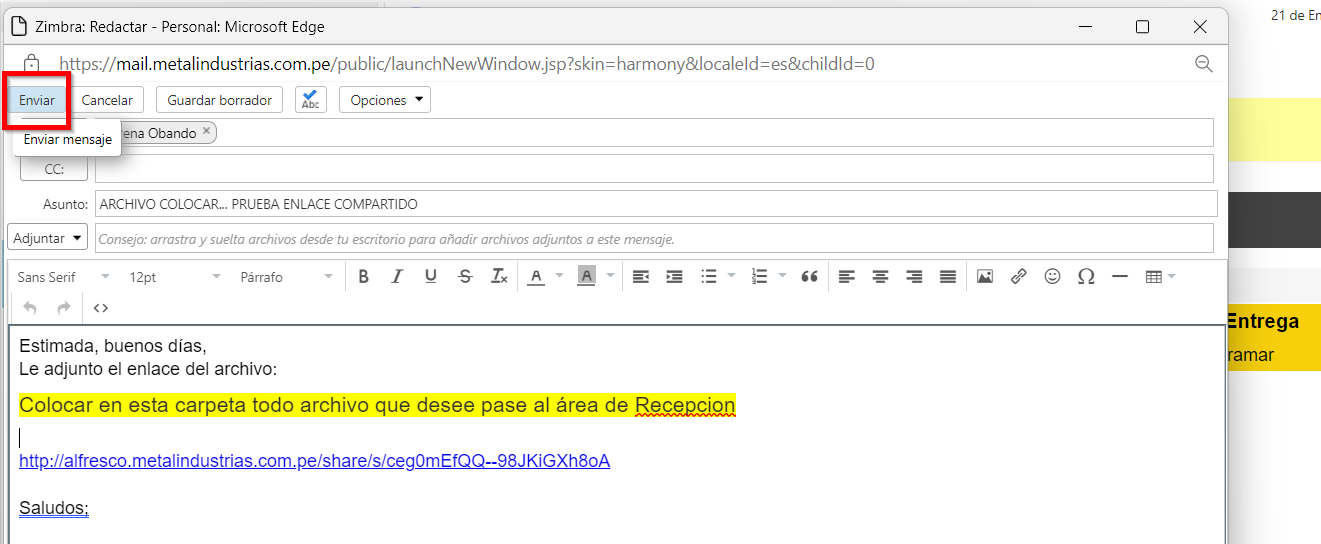- Coloco el correo de la persona a quien enviaré el mensaje.